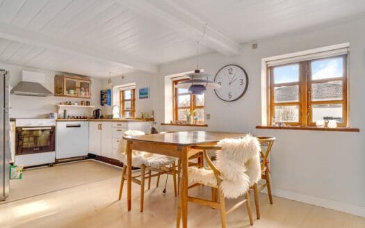 Stråtækt idyllisk bondehus fra 1877 placeret tæt på skov i roligt kvarter. Vil i bo i denne historiske perle med stråtag fra 2003, sprossede vinduer med udskiftede glas, udhus på 18 m2 – som har været fortidens ejeres stald for husdyrhold, solrig og romantisk have ? Vingesuset fra fordums tider skal i give jer selv muligheden for at opleve ved selvsyn. Brødemoseskov er genbo til området – så her kan den skønne natur opleves så tit i ønsker det. Bondehuset er på 98 m2 boligareal og indeholder:Entre med klinkegulv og trappe til 1. salen. Autentisk køkken i bondehus stil med spisestue, badeværelse med vaskemaskine og brusebad, stue med hyggelig brændeovn og herfra er udgang til den skønneste have med solkroge og terrasser, opholdsstue med det smukkeste lysindfald. På 1. sal er : Repos og i den ene gavl er soveværelse – i den anden gavl er kontor/gæsteværelse. Lyset i boligen er helt fantastisk og de flotte trægulve klæder rummene – så book en visning af boligen og oplev følelsen og historien. Liseleje badestrand er 2,5 km herfra og i bilen tager turen 4 minutter og så kan Kattegat og byen nydes i fulde drag.